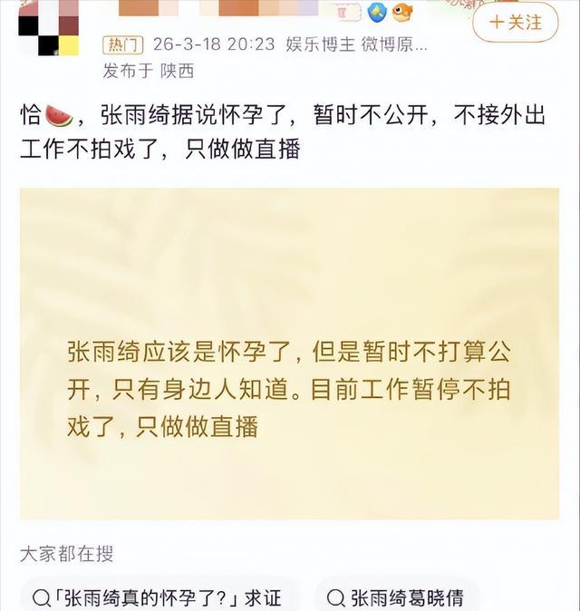对此近日有风声传出,称张雨绮不是不想拍戏而是再度怀孕了,为了保险起见才选择直播带货的。