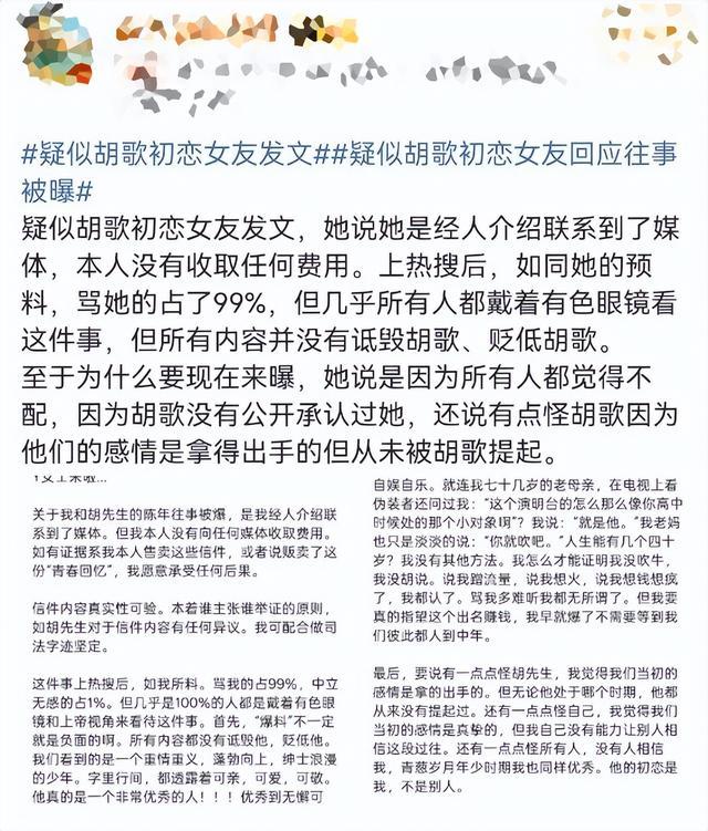 18日胡歌写给初恋的信件曝光,19日就有疑似初恋本人跳出来发声:盖章信是真的之后又一通输出。