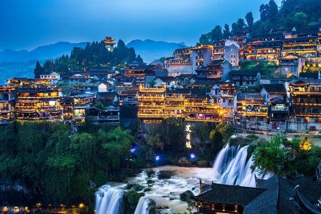 挂在瀑布上的古镇,自带仙气,白天看瀑布潺潺,晚上灯光亮起,古镇倒映在水里,美到窒息。避开节假日和网红打卡高峰,随便找个角落都能拍出氛围感大片。