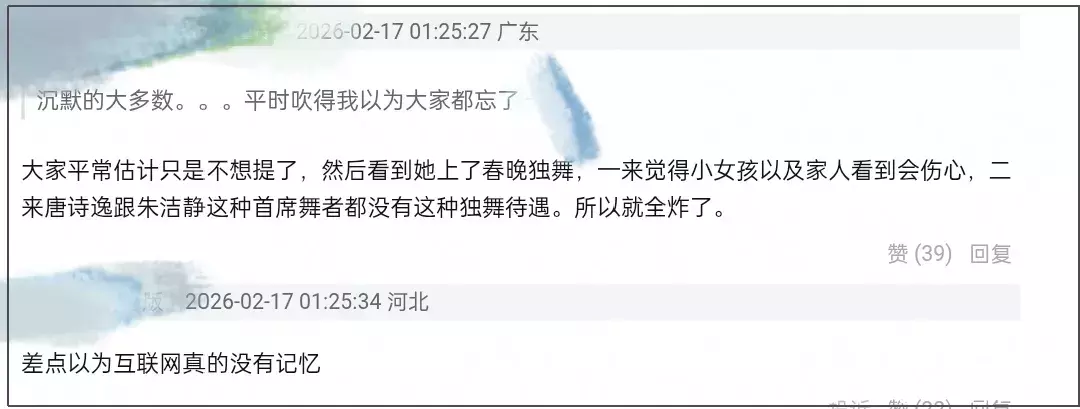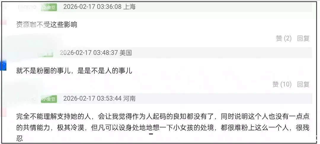而看到刘浩存跳舞便自动激发另一个话题——那个一生被毁了的素人女孩。当年,刘浩存父母致小女孩一级伤残事件,大多数人并不清楚其中的细节,所以会有“刘浩存父母的错,跟她有什么关系,她也被连累了”的声音,这种只能共情“刘浩存未成年”的言论也引起了一些不满。