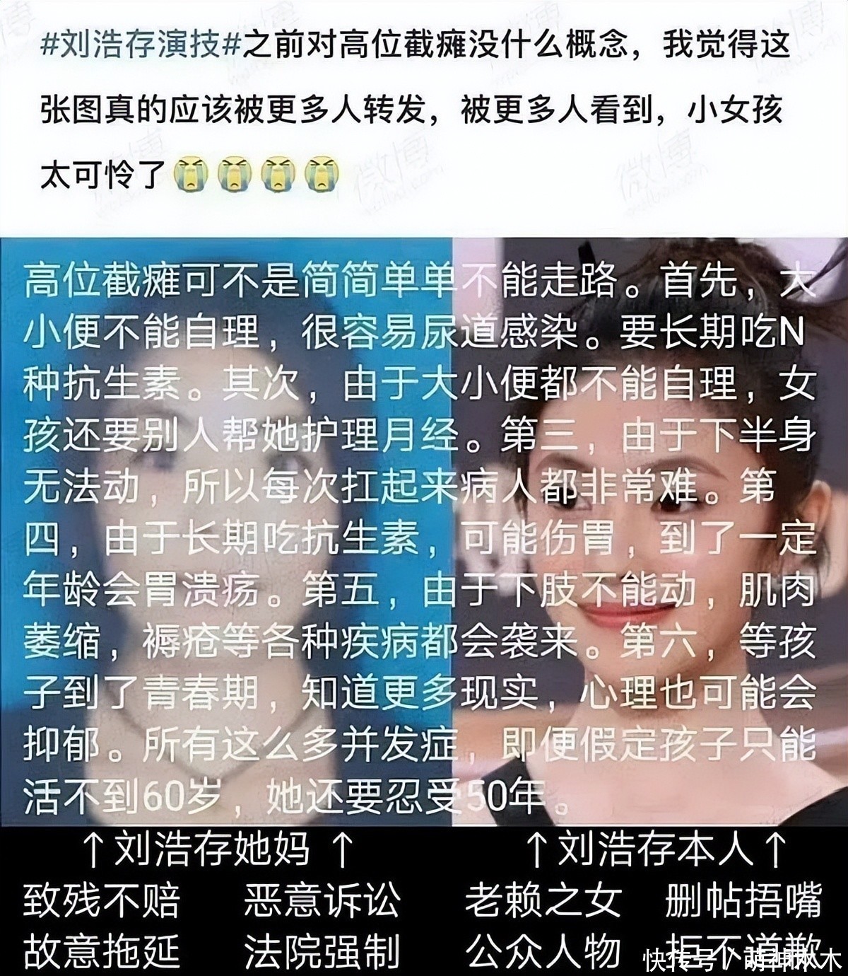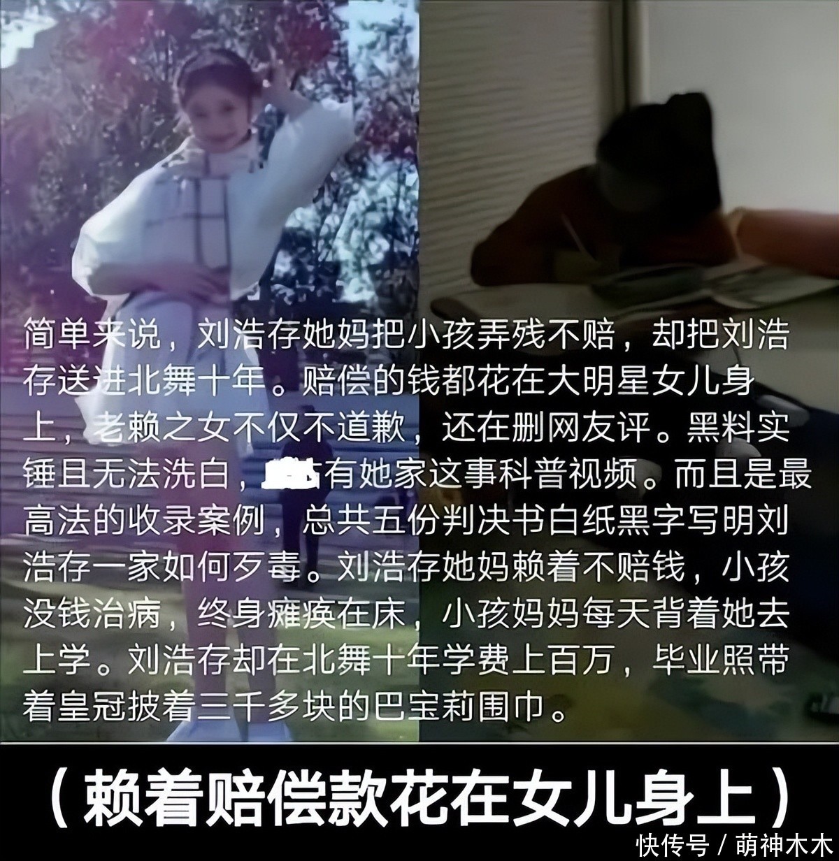 而这期间,刘浩存接受着最好的舞蹈教育,过着优渥的生活,受害者小女孩却只能终身依赖父母照顾生理。能说无辜吗?