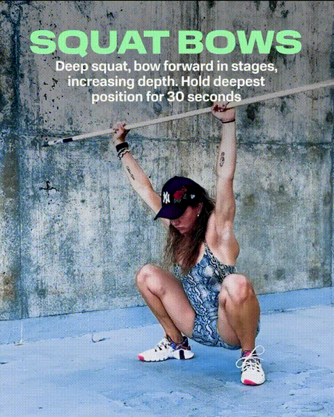 熟练掌握瑜伽蹲以后,可以试试下面这五个动态练习来加深你的深蹲。
