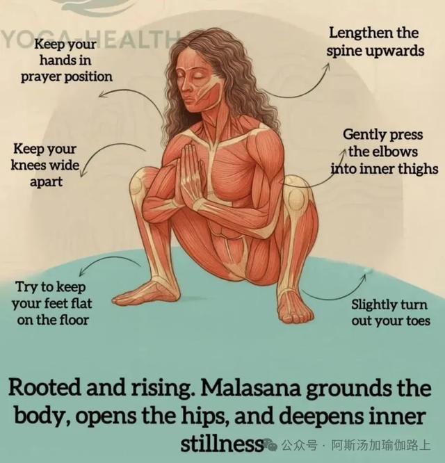 malasana是一种深蹲瑜伽姿势,双脚着地,臀部向地板方向下沉,手掌在胸前合十(Anjali Mudra)。在它的完整表达中股票配资手机版下载,手臂像花环一样缠绕在腿上——因此得名。