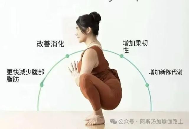 花环式是一种深蹲瑜伽姿势,可以改善髋部灵活性、脚踝灵活性、盆底力量和消化能力,同时促进接地和稳定性。